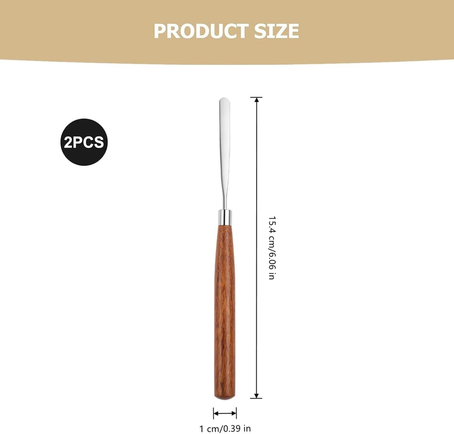 - What’s Inside: The set includes two palette knives, featuring a sophisticated brown hue. Dimensions: 15.4 cm x 1 cm (6.06 inches x 0.39 inches), weighing 10 grams each. Each knife arrives individually wrapped, presenting a neat and pristine appearance