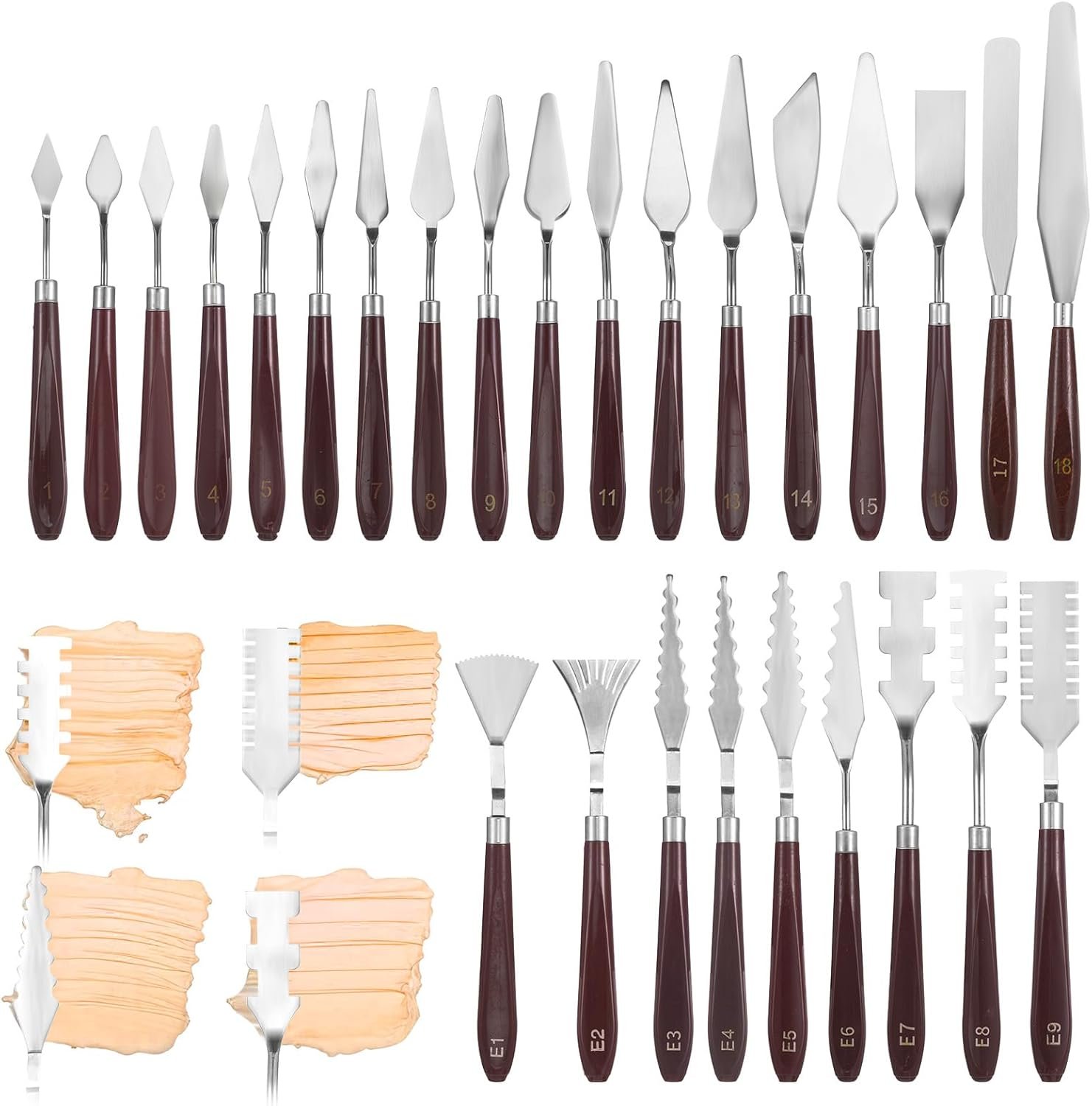 • Numbered Handles&Precision Stroke: Each painting knife in this set features a distinguishing number on the handle, allowing for quick and easy identification.This thoughtful design saves time and reduces frustration when selecting the right tool for your project. Our paint spatulas are designed with fine workmanship, featuring smooth surfaces for easy application and comfortable grips. The firm interface ensures smooth control, making these tools perfect for both detailed work and broad strokes.