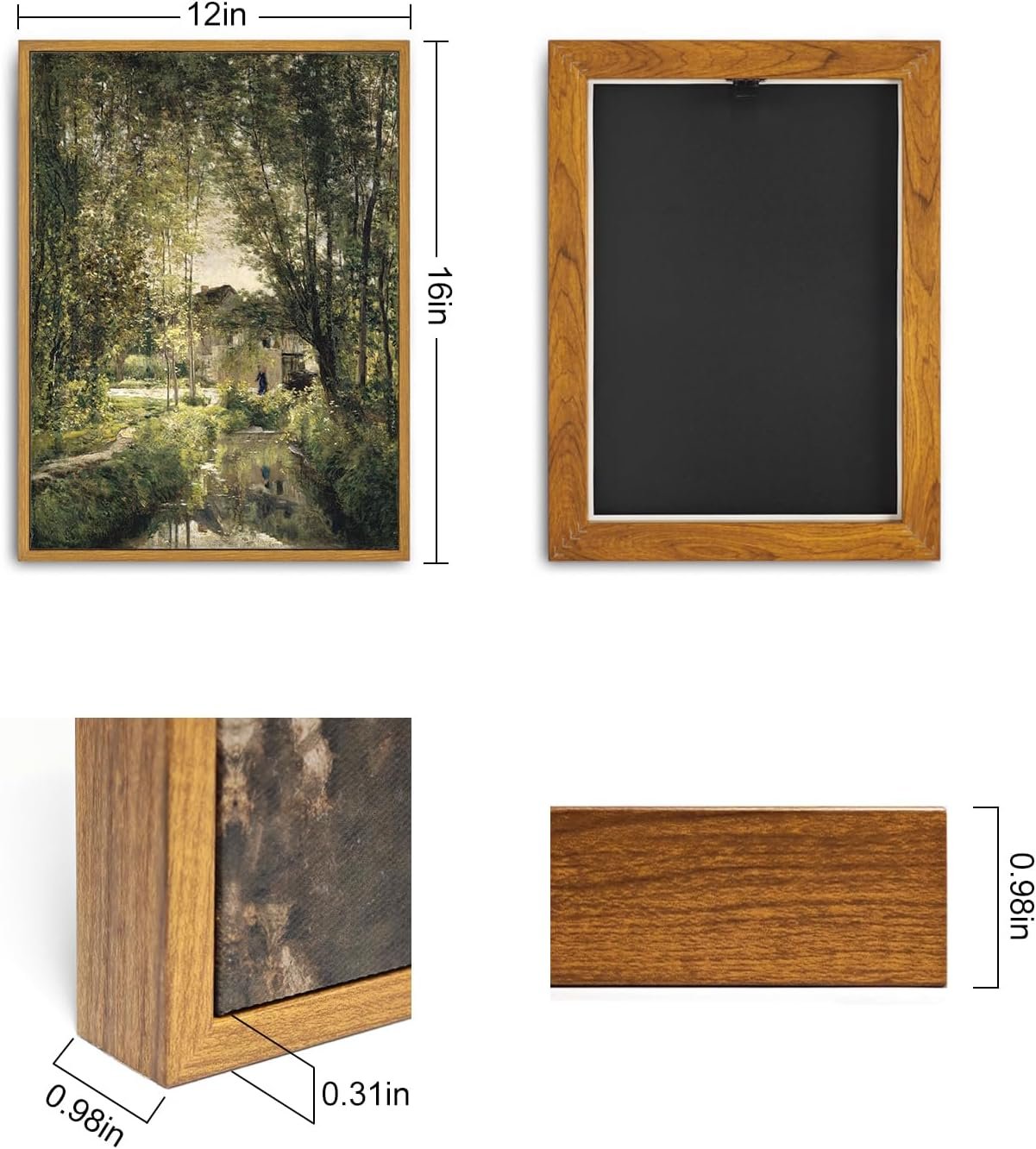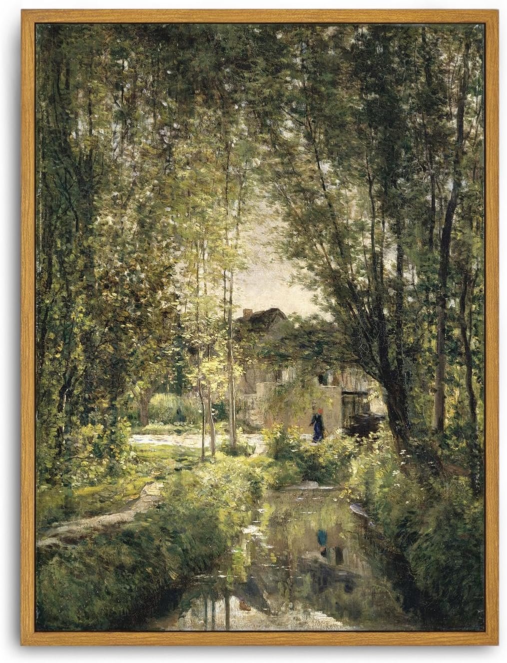 Framed Canvas Wall Art Vintage Print Oil Paintings Landscape with a Sunlit Stream Country Rustic Summer Green French Retro Aesthetic for Home Living Room Bathroom Wall Decor (12″x16″)